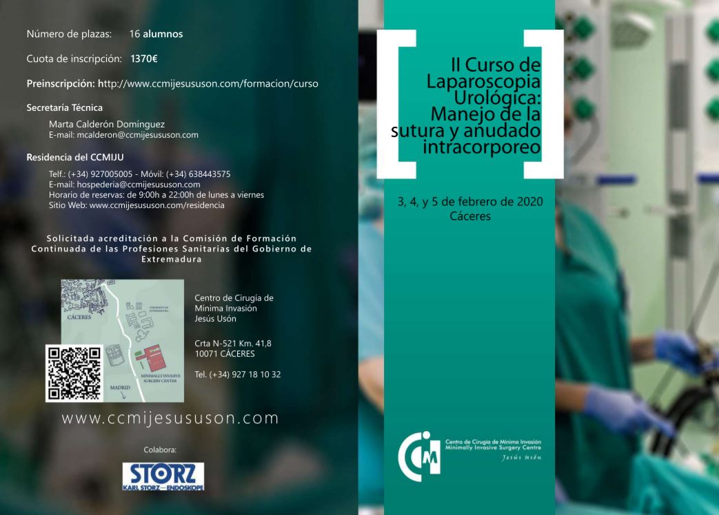 CCMIJU has organised the II Urological Laparoscopy Course: Suture Management and Intracorporeal Knotting which wil take place at JUMISC from 3 to 5 February under the Direction of Álvaro Serrano Pascual (Urology Service Specialist at the San Carlos Clinical Hospital, Madrid) and Francisco Miguel Sánchez Margallo (Deputy Scientific Director of NANBIOSIS)