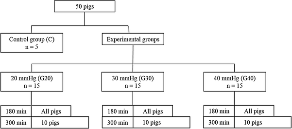 The study was performed with the participation of NANBIOSIS Units: U21-Experimental operating rooms, and U22-Animal housing. and showed that the  evolution of intestinal injuries from pneumoperitoneum-induced IAH depends on the degree of IAP, these damages may be associated with decreases in APP and pHi, and increases in Lc