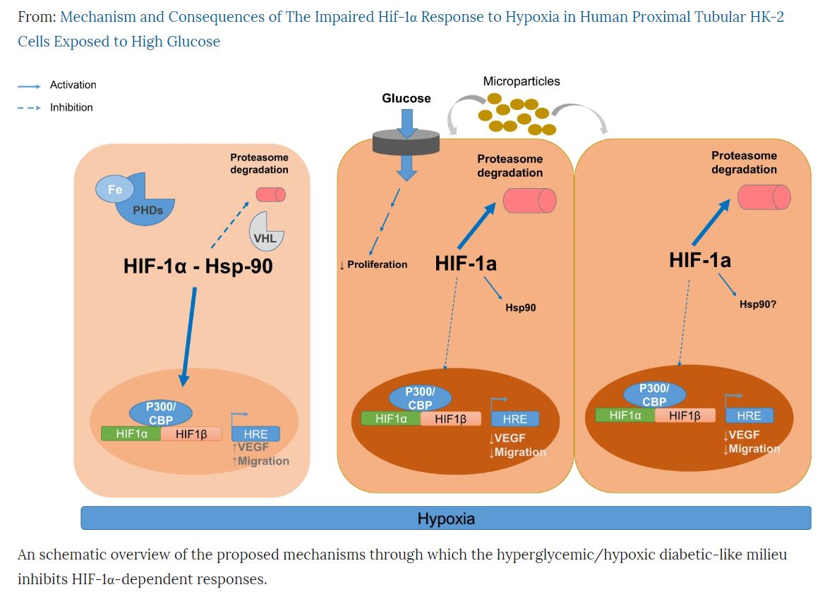 Mechanism and Consequences of the Impaired Hif-1α Response to Hypoxia in Human Proximal Tubular HK-2 Cells Exposed to High Glucose. Coral García-Pastor, Selma Benito-Martínez, Victoria Moreno-Manzano, Ana B. Fernández-Martínez, Francisco Javier Lucio-Cazaña. SCIENTIFIC REPORTS, (2019) 9:15868 | https://doi.org/10.1038/s41598-019-52310-6