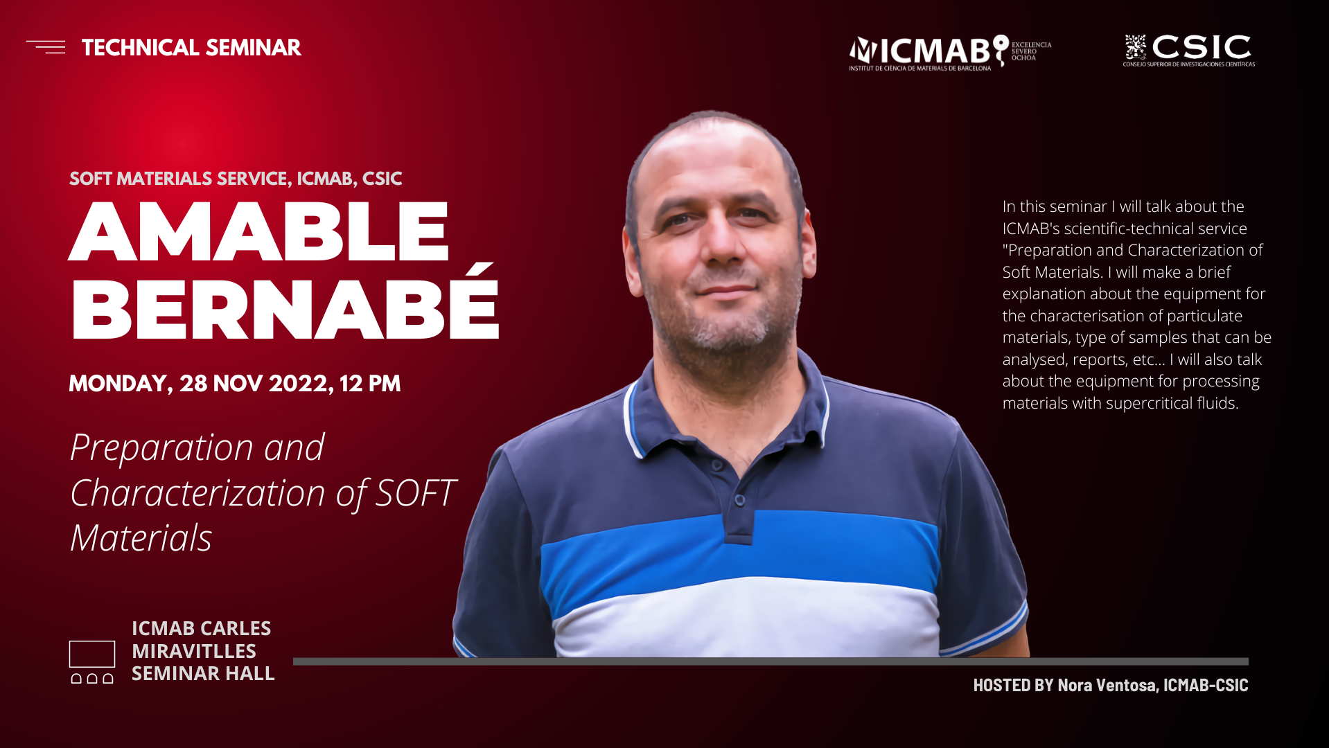 Place: Institute of Materials Science of Barcelona (ICMAB) -CSIC – Conference room