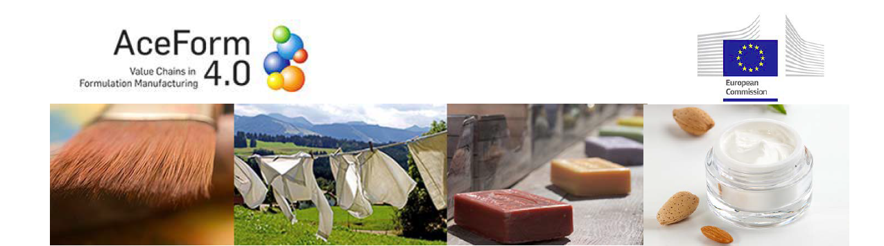 This event targets industrial and academic players interested in bringing formulation technologies to the next level through collaboration. The main purpose of the day is to validate the recommendations that will be presented to the European Commission (EC) as to what are the areas of research that should be prioritized in the coming framework programs in the context of formulated products. These recommendations, which been put together within the context of AceForm4.0, will be validated by participants during short discussion sessions.