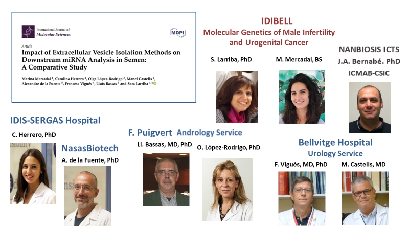 Impact of Extracellular Vesicle Isolation Methods on Downstream miRNA Analysis in Semen: A Comparative Study. Marina Mercadal, Carolina Herrero, Olga López-Rodrigo, Manel Castells, Alexandre de la Fuente, Francesc Vigués, Lluís Bassas and Sara Larriba. Int. J. Mol. Sci. 2020, 21, 5949; doi:10.3390/ijms21175949