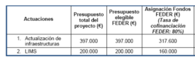 The actions and their budget are detailed below, together with the FEDER co-funded rate and the national contribution.