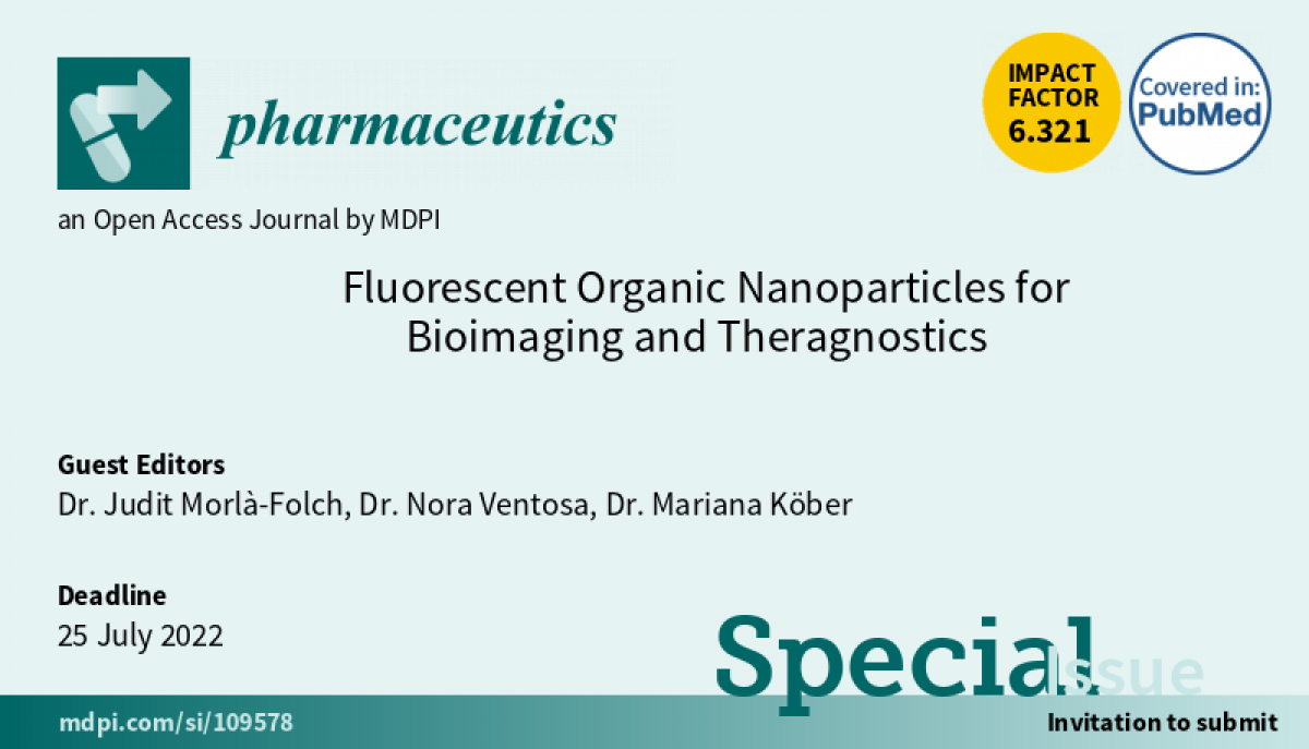 The Special Issue on “Fluorescent Organic Nanoparticles for Bioimaging and Theragnostics“ belongs to the “Nanomedicine and Nanotechnology” section and has a deadline for manuscript submissions on 25 July 2022.