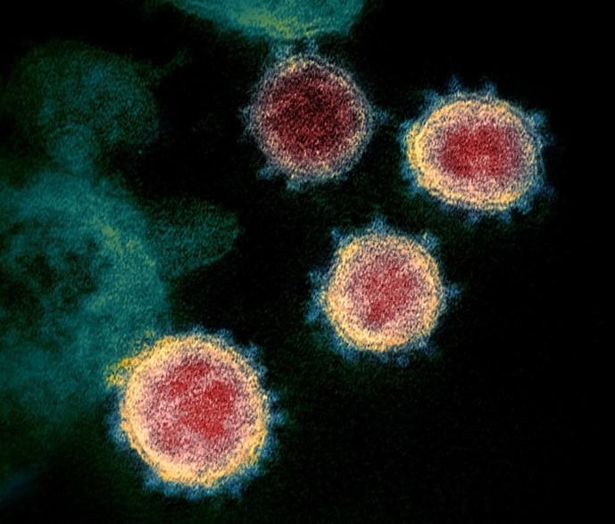 Transmission electron microscope image of SARS-CoV-2 (National Institute of Allergy and Infectious Diseases https://www.niaid.nih.gov)