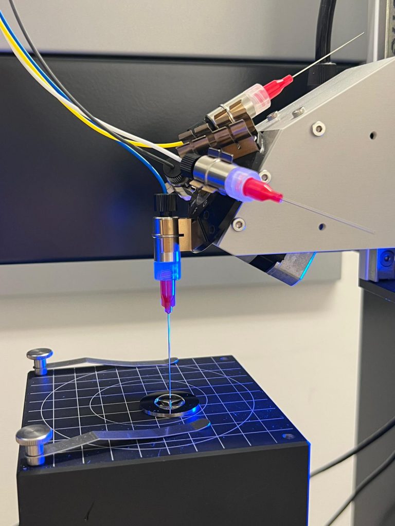 A particle particle analyzer equipment (Exoid) has been inslalled at NANBIOSIS U20 for measurement of the concentration and the size of nanoparticles. The Exoid is the latest instrument from the Izon company to measure the physical characteristics of nanoparticles in electrolytic solution. Based on Tunable Resistive Pulse Sensing (TRPS) principles, the equipment is capable of measuring the size of the particles, their concentration and Z potential, through the use of a nanopore that allows measurements to be made in a defined size range.