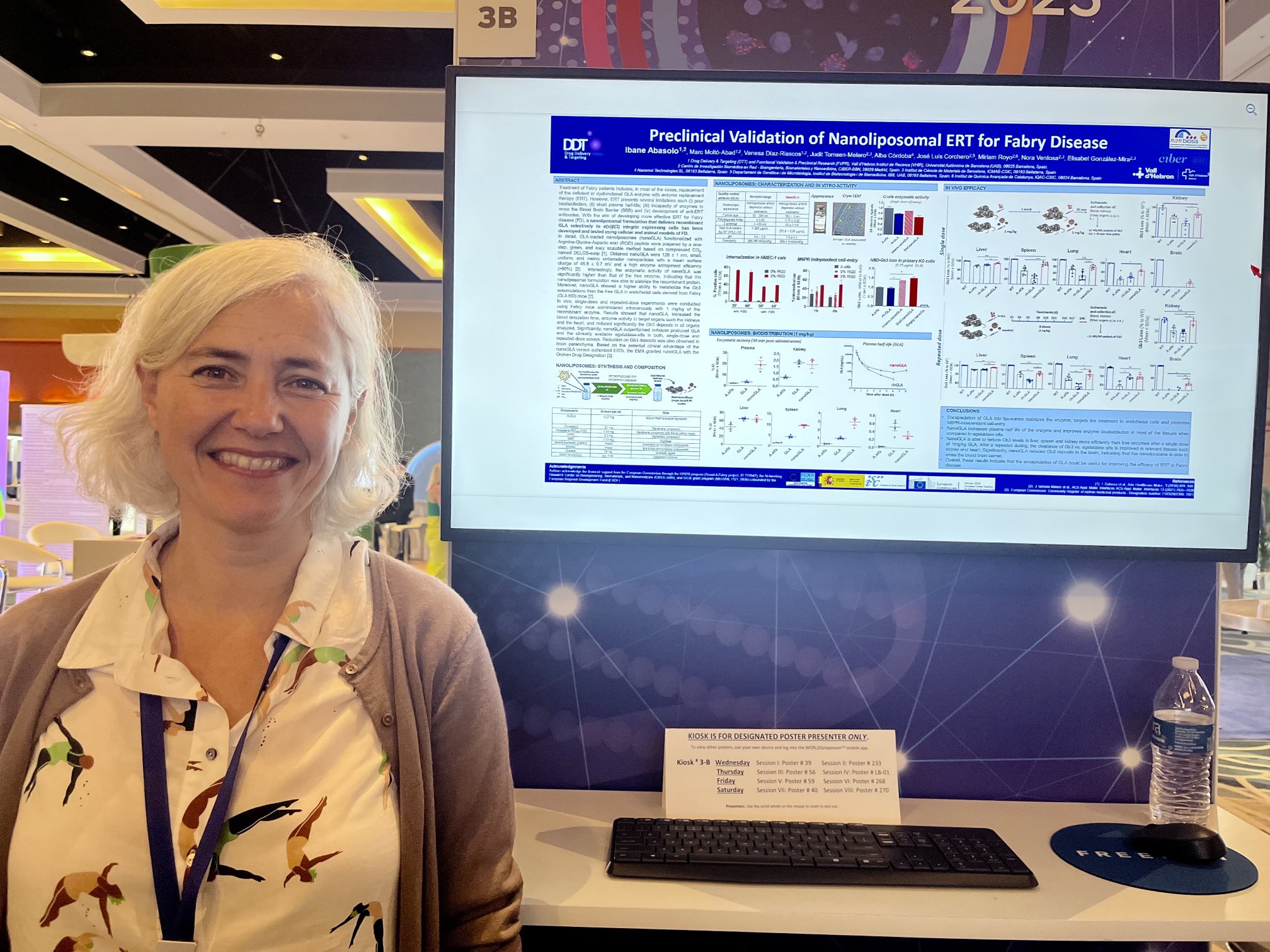 Dr. Ibane Abasolo, Scientific Director of NANBIOSIS U20, was at the WORLDSymposia conference last week in Orlando (FL, USA), where the latest advances in preclinical study and clinic of lysosomal storage diseases were explained. There, she presented the results obtained in the Smart4Fabry project coordinated by the CIBER-BBN where nanoliposomes were developed for the treatment of Fabry disease. The work, entitled “Preclinical Validation of Nanoliposomes for ERT for Fabry disease”, was a result of the collaboration of the groups of Dr. Ventosa and Dr. Corchero, both from CIBER-BBN, and the participation of units U1, U3, U6, and U20 of the ICTS Nanbiosis.
