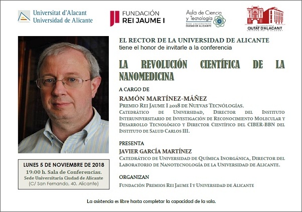 Ramón Martínez Mañez, Scientific Director of Unit 26 of NANBIOSIS NMR: Biomedical Applications II, will be next Monday, November 5 at 7 pm at the Headquarters of Alicante City (San Fernando, 40), where he will impart the conference “The scientific revolution of Nanomedicine,”